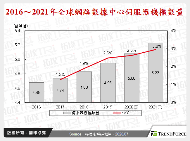 2020-07-16 拓墣產業研究院 2017~2021年全球超大規模網路數據中心數量 圖表資料 伺服器 意見反映 字體大小 小 中 大 摘要 請輸入您的會員帳號與密碼,即可瀏覽全文 帳號 密碼 Login 如何購買 下載完整圖片檔案 87.65KB GIF 會員專屬 您好,該資料屬會員權益方可瀏覽,您需成為會員且購買此產業項目權限才可觀看,詳細說明如下: 拓墣產業研究院之「產業資料庫」為付費的會員服務,若您尚未具備會員身份,歡迎您申請加入或是與我們的客服聯絡瞭解。 若您所屬公司機關已具有拓墣會員身份,並且設定予貴公司人員線上申請,請先行移至「申請會員帳號」填寫申請資料後送出,我們會儘快為您審核辦理。若未開放線上申請,請您詢問貴公司的承辦連絡人處理,謝謝。 由於貴公司無採購此產業項目,因此您將無法瀏覽此篇文章,欲查詢貴公司所購買的產業項目明細,請至「會員權益」查詢,謝謝。 客戶服務專線: 02 8978-6498 ext.822 客戶服務信箱: 意見反映 請填寫正確的個人資料,以確保我們能將回覆的資訊傳達給您。您的意見送出之後,系統即自動將意見內容轉達給我們的客服人員,並寄送一份電子郵件至您填寫的電子郵件帳號,供您留存。 *為必需填寫資料欄位。 *您的姓名: *郵 箱: 連絡電話: *意見類別: 網站功能 研討會 其他 *議題主旨: *您的意見: 點擊驗證 確認送出 清除重填