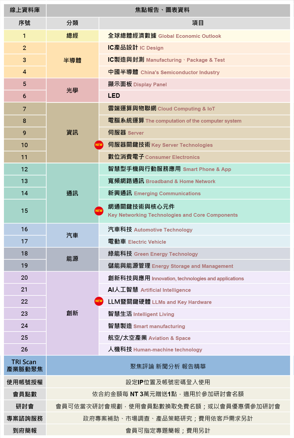 拓墣科技成立至今已屆二十年,累積各類產業龐大歷史分析與市場動態資訊,建構豐富的產業資料庫。客戶不但可利用動態分類搜尋引擎,在最短時間迅速搜尋到所想要的準確資料,也可藉由網際網路憑個人專屬帳號及密碼,隨時在世界各地上網查詢,讓產業升級無國界,知識更新零時差。